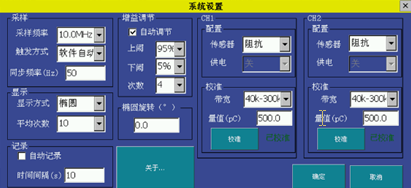 校準(zhǔn):該按鈕對當(dāng)前選中傳感器和選中頻帶進(jìn)行校準(zhǔn),對于阻抗可進(jìn)行現(xiàn)場校準(zhǔn);而超聲現(xiàn)場不能校準(zhǔn),在設(shè)備出廠時,需要輸入口令進(jìn)行出廠校準(zhǔn),目的是避免用戶自行對超聲校準(zhǔn),影響設(shè)備的準(zhǔn)確度。