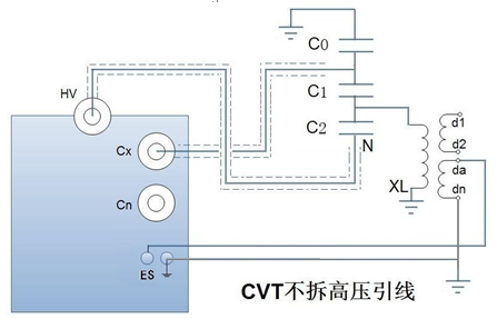 2、不拆高壓引線測試CVT電容值和介損測量模式:CVT自激法。電壓≤2kV