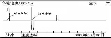 電纜故障測(cè)試系統(tǒng)定光標(biāo)時(shí),發(fā)射正脈沖上升沿與基線交點(diǎn)定為起點(diǎn),反射負(fù)脈沖下降沿與基線交點(diǎn)出定為終點(diǎn)。如果是斷線故障,測(cè)試波形,定光標(biāo)方法與測(cè)全長(zhǎng)時(shí)相同。