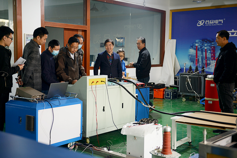 近日,中車青島四方機車車輛股份有限公司傅總一行到訪合眾電氣,實地考察、洽談合作,同時驗收在我司定制的HZWS-D-1000電纜溫升試驗裝置。