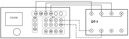 在微機(jī)繼電保護(hù)測(cè)試儀交流試驗(yàn)中,設(shè)定Ua、Uc輸出額定電壓接入兩線(xiàn)圈,繼電器不動(dòng)作,但斷開(kāi)任一線(xiàn)圈繼電器即動(dòng)作,說(shuō)明2、6為同極性端子,否則2、4為同極性端子。